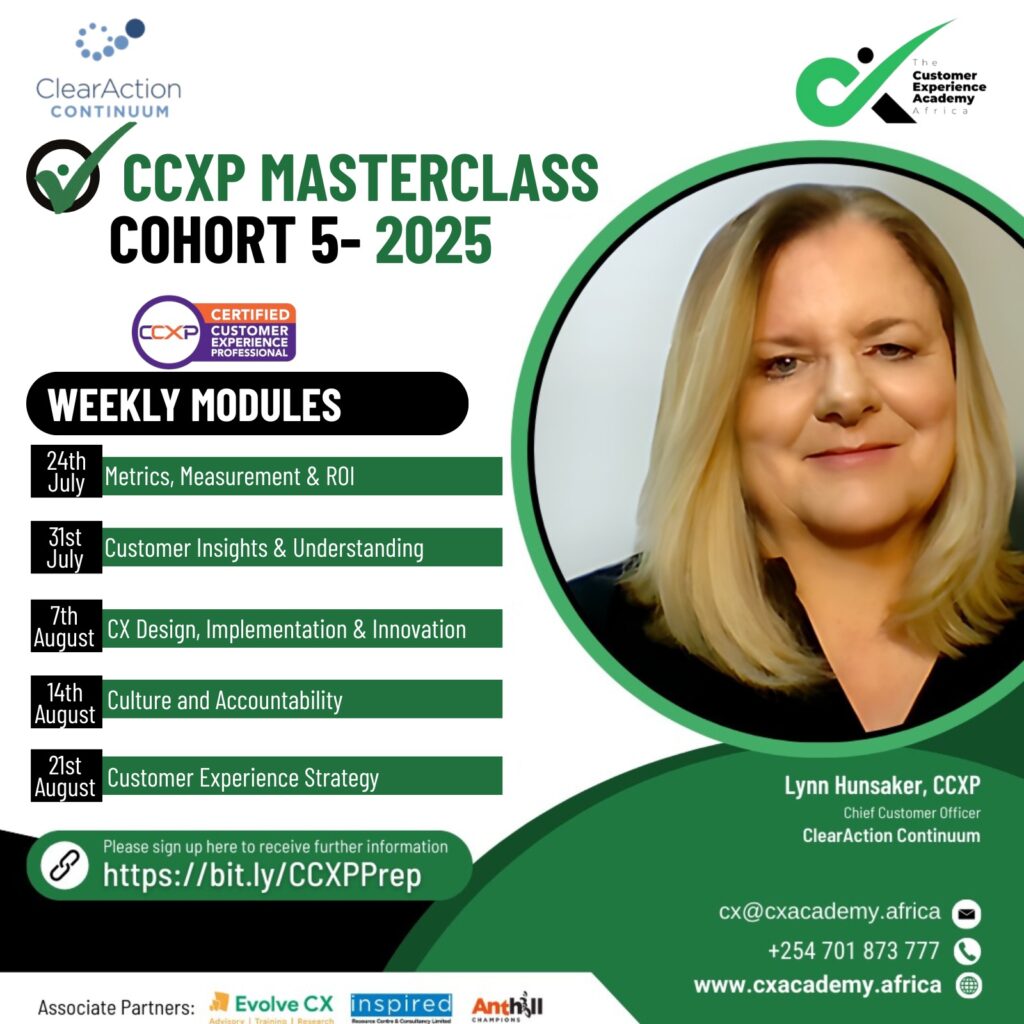 The next cohort kicks off on July 24, 2025, and we’re ready to guide you on the path to becoming one of Africa’s next Certified Customer Experience Professionals (CCXP).